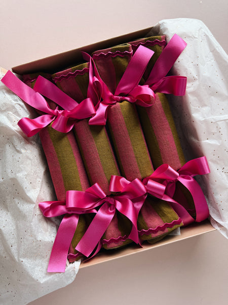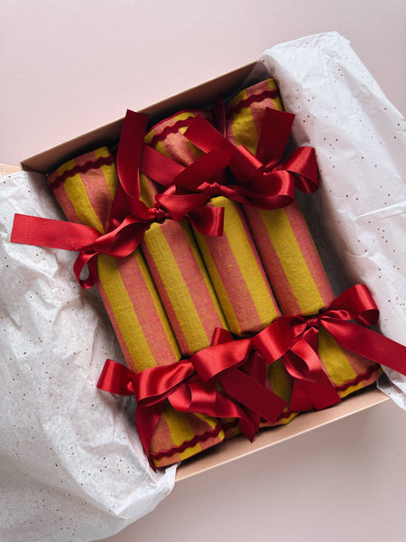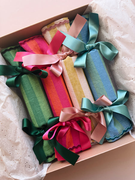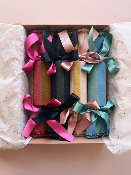 Off the back of our Bestselling Santa Stripes we have launched a new collection of coloured Linen Stripes for 2025.